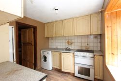 • Kitchen / dining room / Living 7.94m (26'1") x 3.8m (12'6") Large open plan room with kitchen units and solid fuel range.