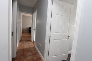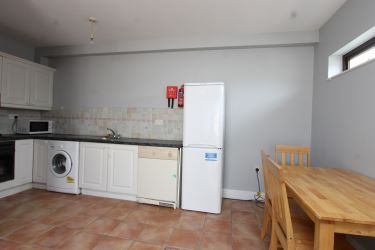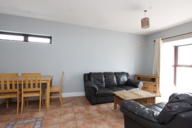 From the front door of the apartment, one enters via a long corridor which has a tiled floor, a coat press and hot press. This leads you to the open plan kitchen/ living/dining room. The kitchen is fitted with wall and base kitchen units, over the counter wall tiling, fitted electric oven and hob with extractor over head and is plumbed for a washing machine. The floor is tiled. The main bathroom has a tiled floor and tiling around the bath and is fitted with a bath which has mixer shower taps, a W.C. and W.H.B.