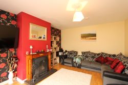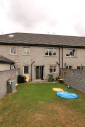 The accommodation comprises of entrance hallway with stairs leading to the first floor. To the left of the hall is the sitting room that features a cast iron fire place and laminate wood flooring. To the rear of the property is the kitchen / dining room with a tiled floor and fully fitted wood kitchen. There are floor to ceiling sliding doors to the rear garden allowing for maximum light. There is a utility room on the ground floor also with fitted presses and plumbed for a washing machine and dryer. The first floor comprises of 3 bedrooms (master en-suite), bathroom and hotpress.